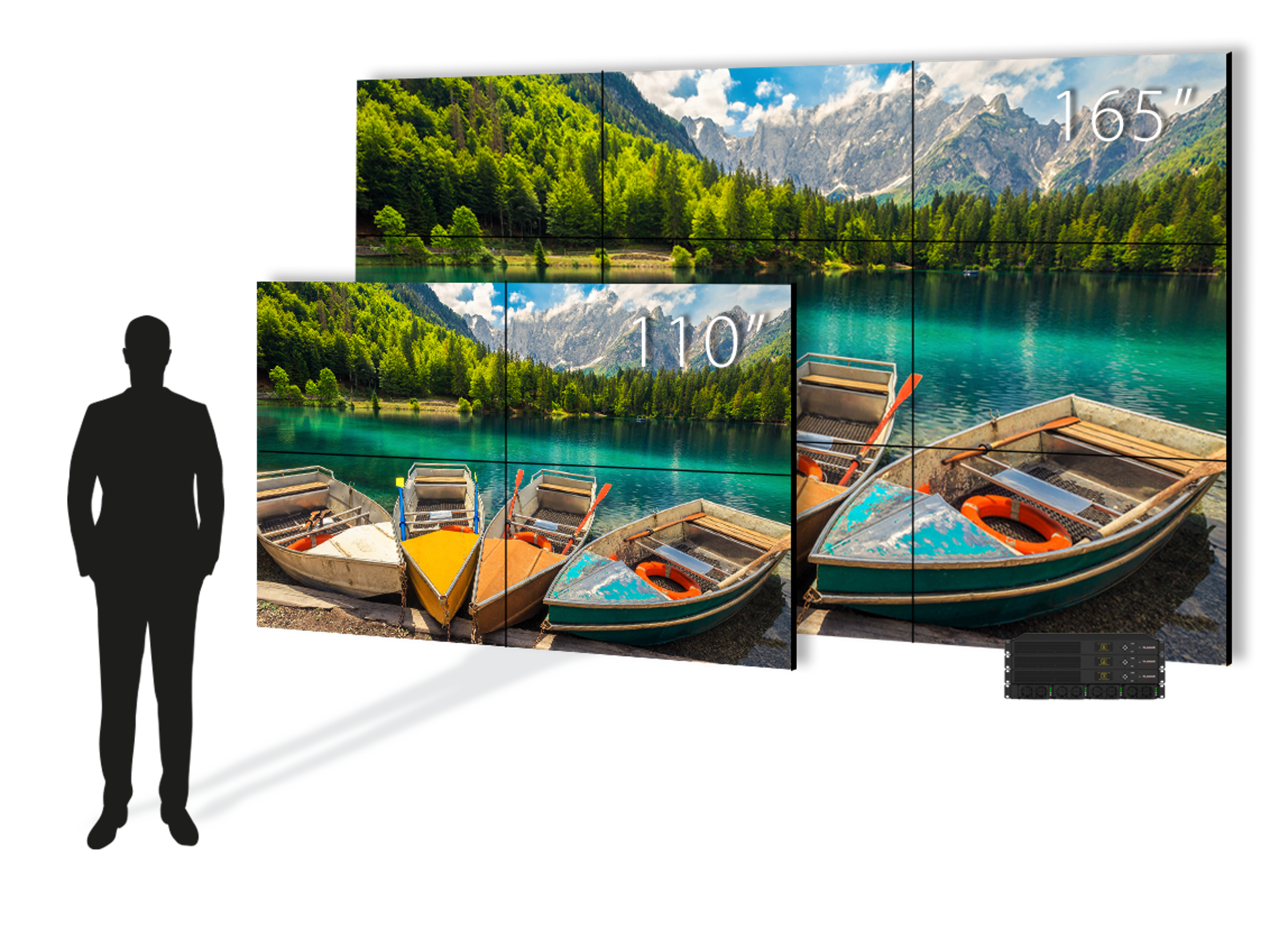 A complete portfolio of LCD video walls with a wide range of different sizes, resolutions and technologies